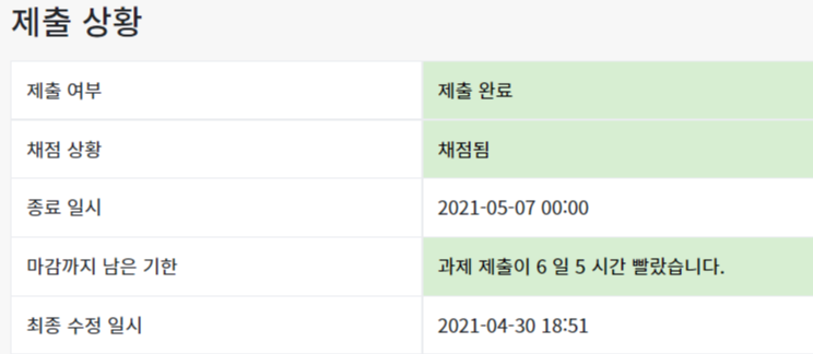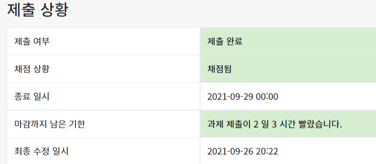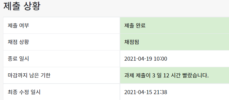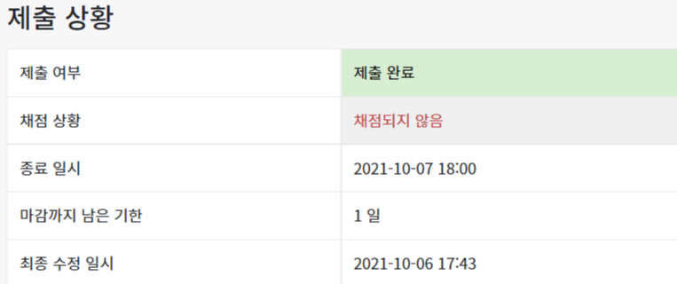 석사 2학기(이번 학기)와 석사 1학기(저번 학기)의 캡처가 섞여 있긴 한데 아무튼... 중요한 건 이게 모두 다른 수업들이고, 이 수업들 외의 다른 수업에서도 기말보고서를 제외한 웬만한 과제들은 다 최소 전날에 냈으며, 이것이 일종의 루틴으로 자리잡아 버려서 이젠 과제를 최소 이틀 전에 내야 '아 좀 빨리 냈네~' 하고 생각하게 되었다는 점이다. 좌 상단 사진은 방금 전 제출한 과제인데 내용도 어렵고 하기 싫어서 미루고 미루다가 3시에 화이자 2차 맞고 '아 백신 부작용 올라오기 전에 미리 얼른 써서 내야겠다...' 하고 낸 것이다. 근데 그 생각이 무색하게 아직까지 아무 반응도 없다. 아니 아직 팔 근육통도 전혀 없는데 대체 뭐지? 조용히 지나간다면야 좋은 일이지만 약간 김이 새기도 한다. 아무래도 나 자신이 이거 핑계로 다 미루고 쉴 생각이었던 것 같다.